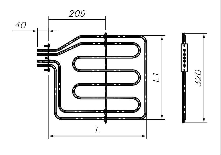 | Код РИВШ.681827. | Напряжение (V) | Мощность (W) | Материал ТЭН | Диаметр ТЭН | L, мм | ||