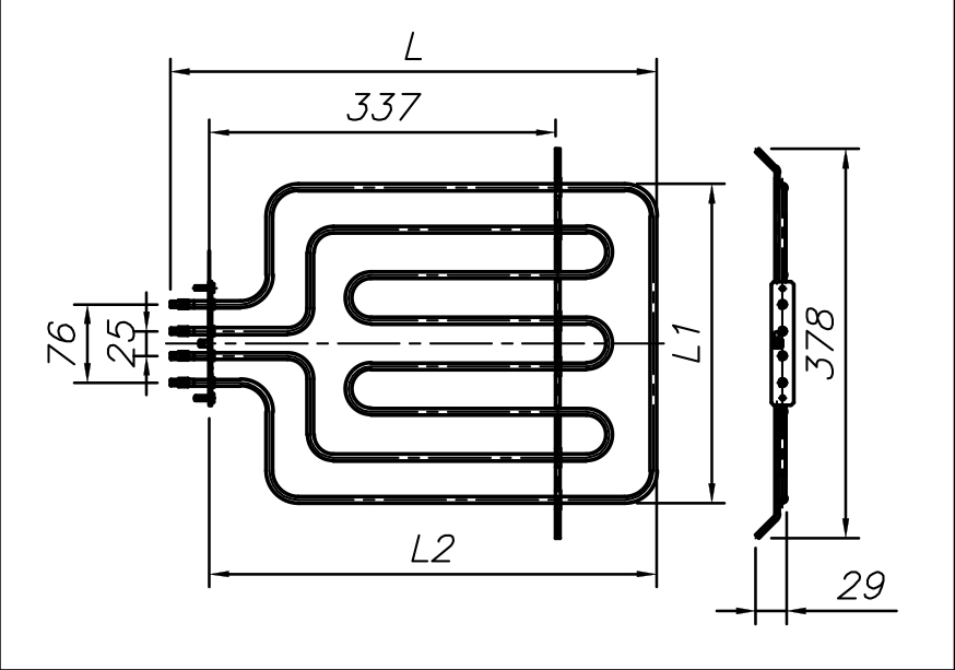 Нагрівальний елемент 2300-2600 Вт 230 В підходить до побутової духовки. ТЕН виготовляється з якіcної нержавіючої труби та на сучасному обладнанні.